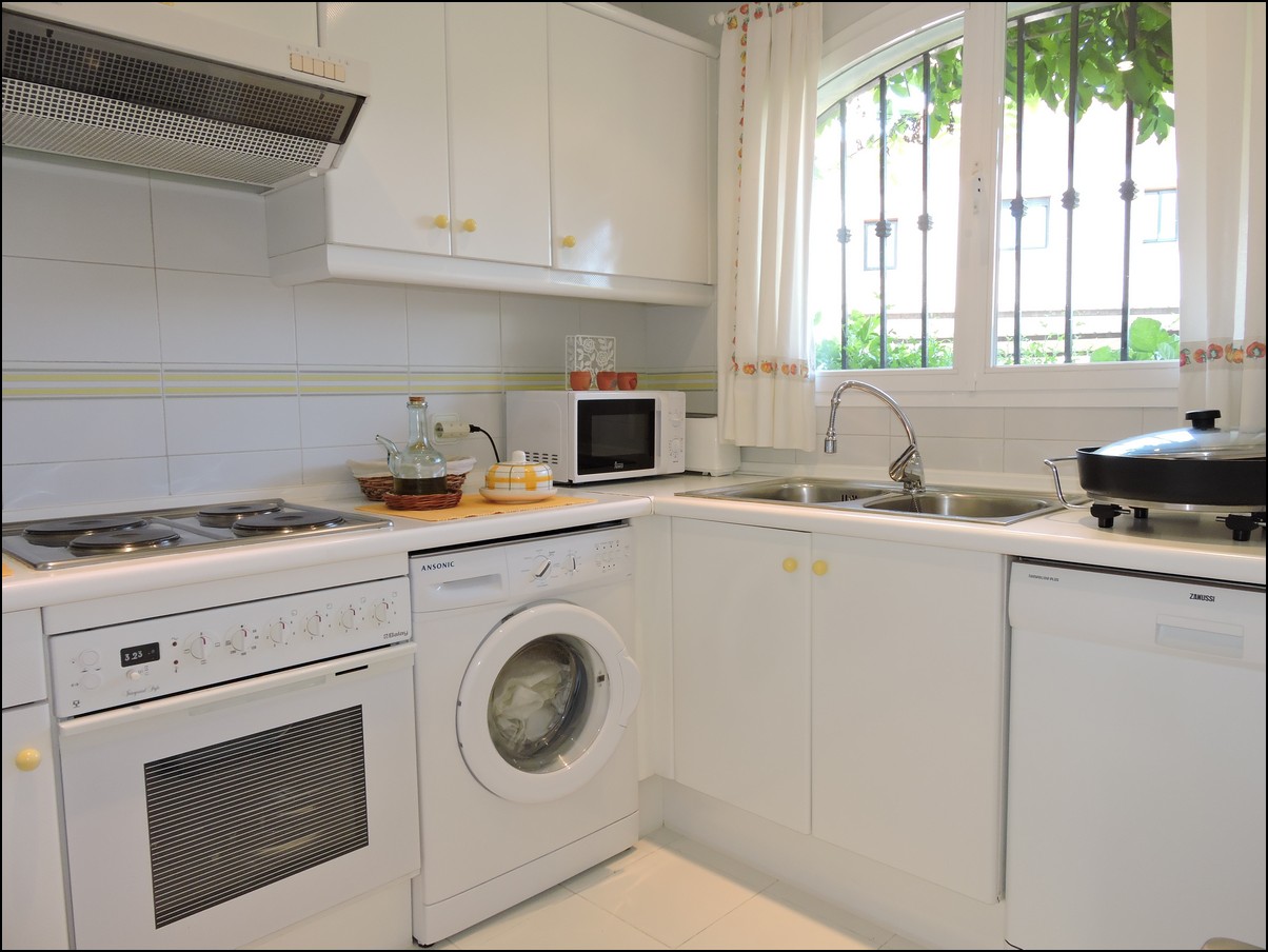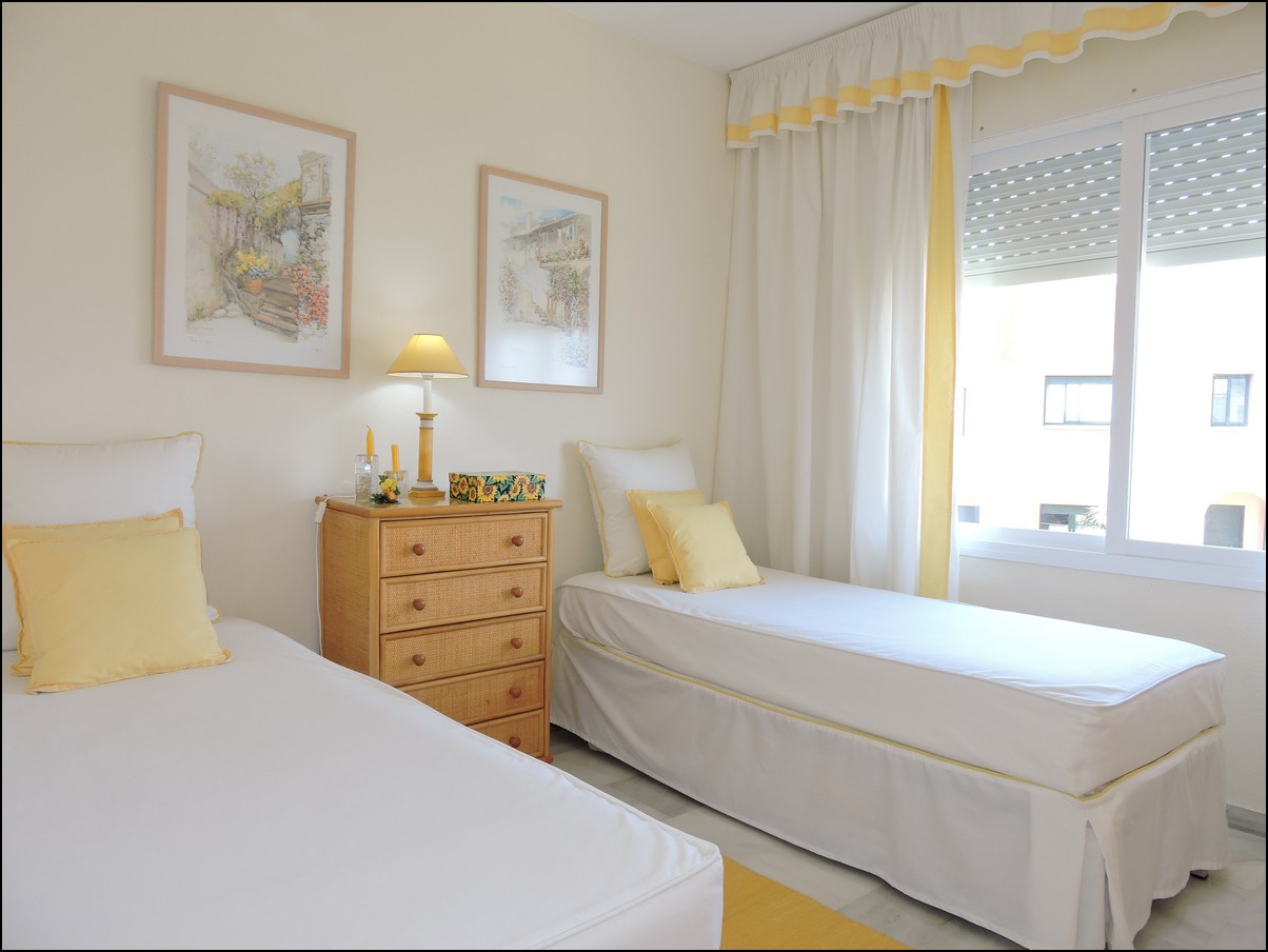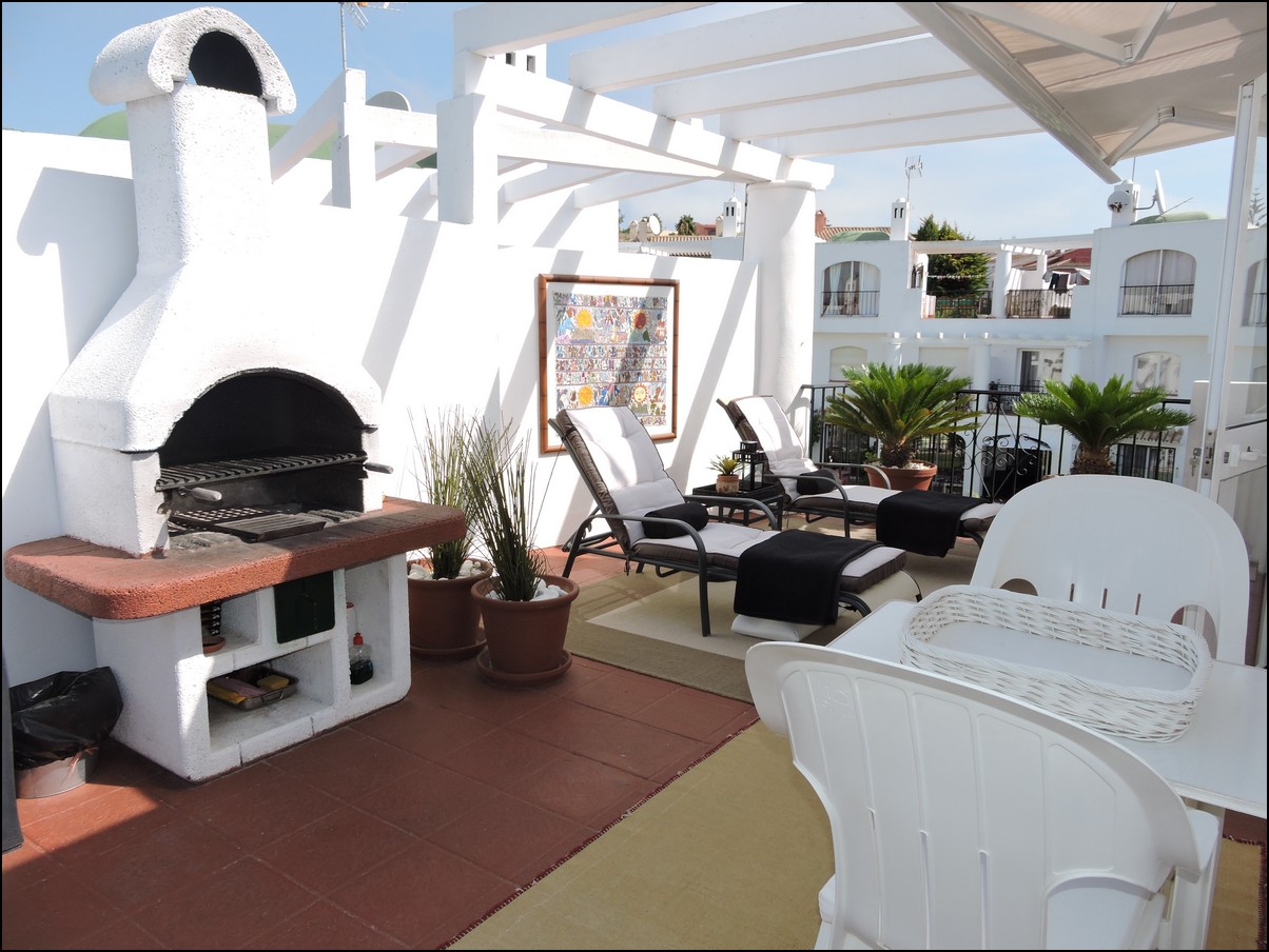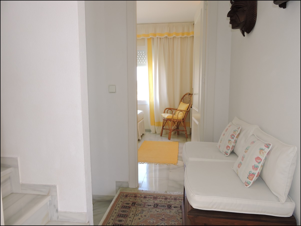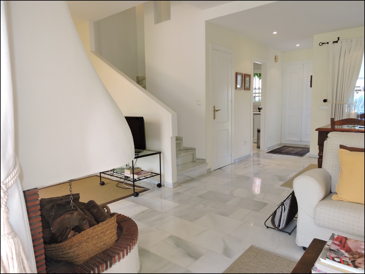 Overview: Townhouse in Duquesa, Altos de la Duquesa. Lovely exclusive small urbanisation with very well kept gardens, pool and the townhouse is in immaculate condition. The house is sold fully furnished and all furnishings are of high standard, beautiful classic décor. Entering the urbanization you have your own private / street parking in front of the door of your house. Little front terrace. Inside, nice good fully fitted corner kitchen. Guest toilet. Good size dining and living room, with fireplace. From the lounge walk out onto a nice terrace looking out onto the gardens and communal pool. First floor two large en-suite bedrooms. Master bedrooms also has a nice terrace looking out onto the pool (South east). Upstairs another bedroom/ dining area at the moment. Barbecue, loungers and great area to bake in the sun. All in absolute fantastic condition. Great little holiday home or first residence. Townhouse in Duquesa, Altos de la Duquesa. Adosado en Duquesa, Altos de la Duquesa. Preciosa y exclusiva urbanización pequeña con jardines muy bien cuidados, piscina y la casa adosada en perfectas condiciones. La casa se vende completamente amueblada y todos los muebles son de alta calidad, hermosa decoración clásica. Al ingresar a la urbanización tiene su propio estacionamiento privado / en la calle frente a la puerta de su casa. Pequeña terraza delantera. En el interior, buena cocina de esquina totalmente equipada. Aseo de invitados Buen tamaño comedor y sala de estar, con chimenea. Desde el lounge salir a una agradable terraza con vistas a los jardines y la piscina comunitaria. Primera planta dos habitaciones grandes con baños en-suite. El dormitorio principal también tiene una bonita terraza con vistas a la piscina (sureste). Arriba, otro dormitorio / área de dining en este momento. Barbacoa, tumbonas y una excelente zona para hornear al sol. Todo en condiciones fantásticas absolutas. Gran pequeña casa de vacaciones o primera residencia. Sunflower Estates.